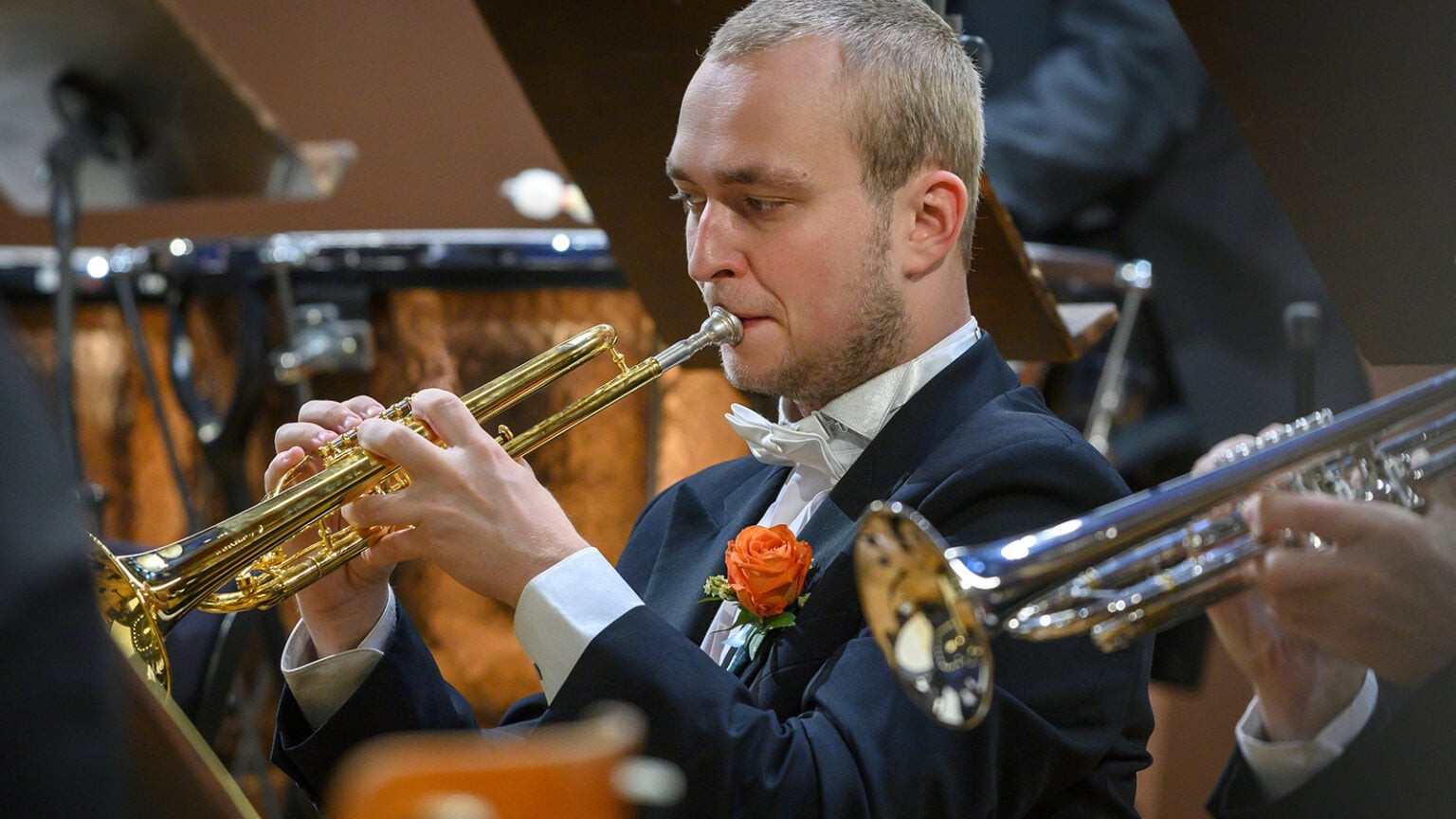 Since September 2020 he has been a member of the Czech Philharmonic, where he holds the position of first trumpeter. He has also performed as a soloist with the Czech Philharmonic under the baton of principal guest conductor Tomáš Netopil and chief conductor Semyon Bychkov. As an exceptional student aged 13, he joined the class of JUDr. Michal Janoš at the Bratislava Conservatory and was enrolled there in the following year. He later continued at the Academy of Performing Arts in Bratislava. He was awarded the 1st prize and the title of the overall winner at the International Competition for Wind Instruments Brno 2017 among more than 60 trumpet players from the Visegrad Four countries. From 2009 to 2020 he was a member of the Bratislava Hot Serenaders hot-jazz orchestra, in 2012–2015, he was a member of the Slovak Radio Symphony Orchestra. From 2012 to 2019, he was the principal trumpeter of the Slovak National Theatre Opera Orchestra, with small breaks. In 2017 and 2018 he was the first trumpeter in the orchestra of the National Theatre Prague. During that time, he started regularly collaborating with the Czech Philharmonic.